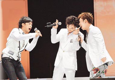 中新網(wǎng)12月3日電 年底樂壇頒獎(jiǎng)禮逼近,宿敵陳奕迅(Eason)與古巨基前晚在音樂會(huì)上演連場(chǎng)好戲!把富痹谂_(tái)上先禮后兵,但臺(tái)下即舌劍唇槍,充滿火藥味。
