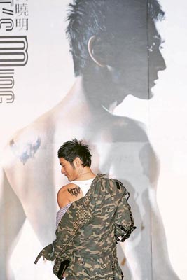 中新網(wǎng)12月13日電 黃曉明昨日在北京麗思卡爾頓酒店,為首張專輯“It's Ming”舉行全亞洲發(fā)布會,獲父母捧場之余,更有半百“明教”歌迷會成員入場見證,歌迷大叫口號“歌舞天王,曉明最強”。現(xiàn)場展示了黃曉明赤裸上身及左膊頭M字雙翼紋身海報,他更露出紋身與海報合影,同時,他更不避嫌找緋聞女友李菲兒擔(dān)任MV女主角。