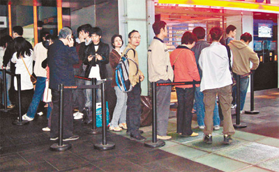 至于另一邊圓方的售票站,因信用卡付款出問(wèn)題只能收現(xiàn)金,令賣(mài)票進(jìn)度大阻,單排頭位買(mǎi)票便花了近一小時(shí),其他輪候歌迷要急急往銀行提款,以免耽誤事。對(duì)于售票機(jī)制,學(xué)友經(jīng)理人陳淑芬說(shuō):“因?yàn)椴辉诩t館搞,所以就沒(méi)有限制了!”提到信用卡機(jī)失靈,她說(shuō):“不關(guān)這部機(jī)的事,是電話線出問(wèn)題,后來(lái)也就沒(méi)事了!”