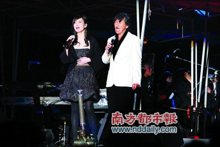 前晚廣州的氣溫跌到6攝氏度,再加上連綿小雨,的確是一個“打狗都不出門”的天氣。而演唱會在上座率不足三分之一的情況下,終于在延時20分鐘后開場了。林子祥(阿lam)一出場就是一首氣勢奪人的《男兒當(dāng)自強》,可是“熱血熱腸熱,熱勝紅日光”的歌詞,卻沒能讓觀眾馬上投入,一曲完畢,掌聲弱不可聞,歡呼聲同樣寥落。演唱會幾乎就在同樣的氣氛中進(jìn)行了大半場,無論是阿lam本人主動走到臺下與觀眾握手,還是嘉賓盧冠廷的出場,甚至是同樣作為嘉賓上臺的玉女周慧敏以“大家如果更熱情點,我會覺得暖些”,暗示有可能將罩在低胸小禮服外的外套脫掉,都無法徹底調(diào)動起龜縮在大衣下的觀眾的情緒,短暫的小高潮過去,轉(zhuǎn)瞬又歸于平靜。