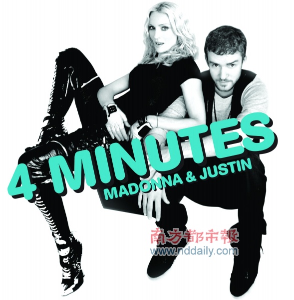 麥當娜全新單曲《4Minutes》已于昨日起全球同步首播,與此同時,唱片公司也正式公布了這張單曲碟的封面設計。因為這首歌是由麥當娜和賈斯汀合唱的作品,所以單曲碟也用了兩人的合照做封面。