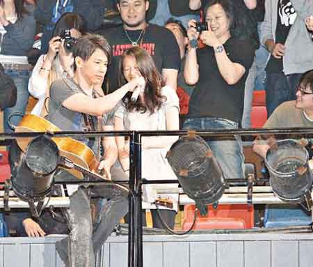 中新網(wǎng)3月26日電 “陶喆123我們都是木頭人”演唱會(huì)前晚(24日)尾場(chǎng)演出,陶喆男女通殺,除有男觀眾送花,亦有女觀眾借合唱機(jī)會(huì)表愛(ài)意,陶喆笑說(shuō)第一次收到男士送花,但卻不接受男士示愛(ài),并趁演唱會(huì)尾場(chǎng)機(jī)會(huì)宣布將做回本行執(zhí)導(dǎo)電影。