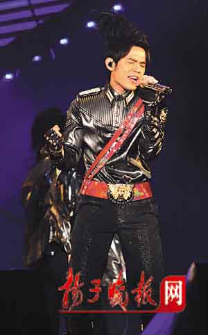 在大人眼里也許他還是孩子,可在孩子眼里他是不可一世的天王。這個(gè)年輕人在舞臺(tái)上真的很帥,當(dāng)然這不僅僅因?yàn)樗谂_(tái)上前后換了近10套華麗無(wú)比的服裝……他昨晚都“玩”了什么?他彈鋼琴?gòu)椆殴~彈吉他、與南拳媽媽中的“彈頭”斗琴、與鼓手斗鼓、抖空竹耍雙截棍……能展示的他都搬上了臺(tái),他極少“寒暄”,但每個(gè)片段他都會(huì)秀上一段自己勤練的舞蹈:牛仔舞、爵士舞、武俠舞、貼面舞……很多快歌被他重新編曲、現(xiàn)場(chǎng)假聲秀了一段《采紅菱》,《雙截棍》被他改得面目全非……