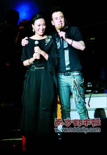 內(nèi)地天后那英則上臺(tái)親自為楊坤做嘉賓,并與楊坤對(duì)唱了一曲《月亮可以代表誰的心》。因?yàn)樯畠阂呀?jīng)暫別歌壇一段日子的那英,被楊坤現(xiàn)場大開玩笑:“我們都知道那英很忙的。當(dāng)年孫楠開演唱會(huì),請(qǐng)她,結(jié)果她懷孕了。后來滿文軍開演唱會(huì)又請(qǐng)她,結(jié)果她又懷孕了”。他笑稱這一次請(qǐng)到那英是因?yàn)樽约涸缭诎肽昵熬吞崆按蚵犃四怯⒌摹吧a(chǎn)計(jì)劃”,在得到“那英暫無再度造人”的可喜答復(fù)后,才即下了預(yù)約單。