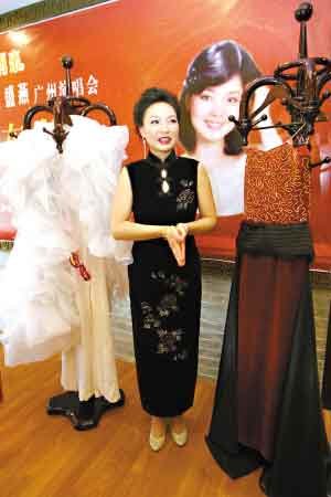 昨日上午,歌手盛燕在廣州召開(kāi)新聞發(fā)布會(huì),為5月9日在中山紀(jì)念堂舉行的“鄧麗君經(jīng)典歌曲演唱會(huì)”宣傳造勢(shì)。為展現(xiàn)跟鄧麗君相似的聲線,盛燕在采訪現(xiàn)場(chǎng)清唱了《月亮代表我的心》,并展示鄧麗君的演唱服,包括一件白裙和一件旗袍。