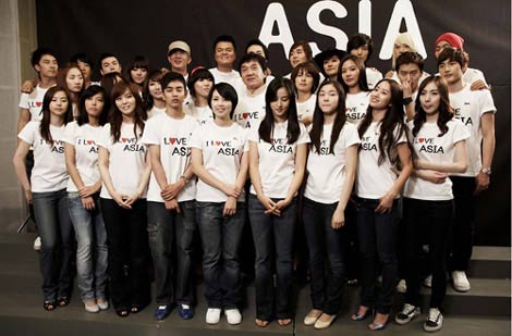 中新網(wǎng)5月30日電 29日上午10時30分,在首爾三成洞路易斯工作室,國際巨星成龍與韓國文體界明星合唱賑災歌曲《我愛亞洲》。到場的韓星有“冰上精靈”花樣滑冰明星金妍兒、去年歌壇的最高藍籌股Wonder Girls和憑借電影《丑女大翻身》一舉成名的影星金亞中等韓國頂級明星。
