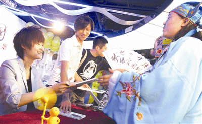 。犗挛2時,李宇春準(zhǔn)時開始簽售,此時場外已經(jīng)被“玉米們”圍得水泄不通。李宇春在連續(xù)兩個多小時的簽售中始終保持微笑,并堅(jiān)持親手遞過簽名本,對每一位歌迷說“謝謝”。因?yàn)槔钣畲簩]嬛杏惺住缎悴藕,昨天?位“玉米”專門穿著古裝扮成“秀才”前來捧場,她們用折扇遮住自己的臉龐,集體一亮相便引得李宇春哈哈大笑。