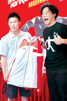 拿著奧運(yùn)戰(zhàn)衣正面反面看了好一陣子愛不釋手,陳奕迅干脆當(dāng)場將李小鵬送的那件衣服穿起來,畢恭畢敬地將拉鏈拉得嚴(yán)絲合縫。
