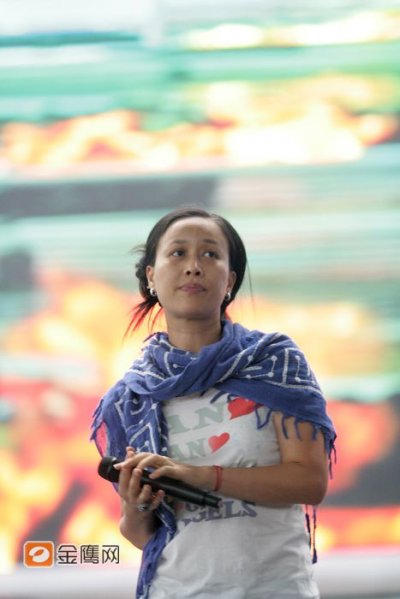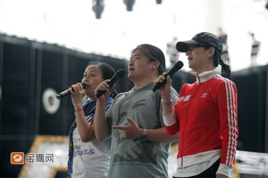 下午2點40分,三人同臺演唱了奧運歌曲《同一個世界 同一個夢想》,并與領(lǐng)舞成員進(jìn)行了溝通交流。(馮紫劍)