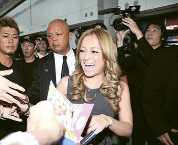 據(jù)香港《明報》報道,昨午2時,身穿灰色貼身裙的濱崎步在10多名日籍工作人員護送下步出機場,現(xiàn)場有逾百名粉絲迎接,主辦單位亦聘請50名保安筑起人墻。原本安排濱崎步經(jīng)VIP通道往上落客區(qū)乘車,但親民的她見到粉絲守候多時,面露燦爛笑容之余,更主動上前打招呼及握手。經(jīng)過一輪近距離接觸后,濱崎步一度收起笑容,似有心事,然后登車離開。