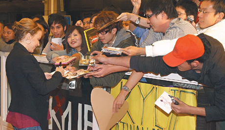 中新網(wǎng)12月3日電 澳洲女歌手凱莉·米洛昨天傍晚抵臺,為明晚在中山足球場登場的演唱會準(zhǔn)備,雖貴為天后,但凱莉態(tài)度親和,帶著招牌笑容為歌迷簽名,表現(xiàn)出亞洲巡回終站的好心情。
