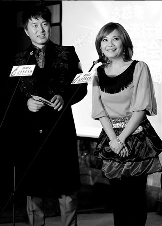 入圍歌手滿文軍、梁靜茹出席發(fā)布會。記者 蒲東峰 攝