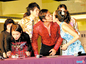 圖文:黃長興楊思琦現(xiàn)場(chǎng)玩游戲 不慎接吻露尷尬