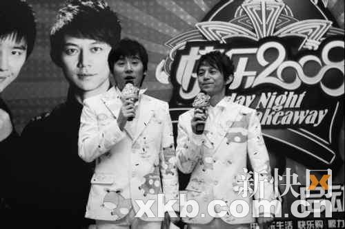 記者現(xiàn)場了解到,“快樂2008”是一檔全新的大型直播互動(dòng)脫口秀節(jié)目,板塊眾多,以至于龍丹妮介紹時(shí)也不得不感嘆“我們到底要做什么是講不出來的”。有節(jié)目編導(dǎo)甚至告訴記者,“快樂2008”就是“快樂大本營+我是冠軍+越策越開心+勇往直前……”龍丹妮干脆直接介紹說:“我們節(jié)目的定海神針就是‘何馬組合’。這個(gè)節(jié)目是用直播的方式制作脫口秀,在中國娛樂性的脫口秀少之又少,所以‘何馬組合’除了在直播中說臺(tái)詞,更重要的是一次只有一遍,沒有錄播的重復(fù)。謝謝兩位的加盟!”