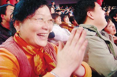 “‘裝’你們知道不?‘裝’在我們東北就是‘顯擺’的意思。你說我老師(指魏積安扮演的田教授)他多能裝呀!花5000塊錢買雙皮鞋,6000塊錢買塊手表,7000塊錢鑲口大金牙,然后一見我面就這樣:你看現(xiàn)在都8點了,我一會請你吃飯,你要不去我踢你……”這一段新加的臺詞配合著小沈陽夸張的齜牙咧嘴的動作,把現(xiàn)場的觀眾都笑翻了。坐在記者身邊一位40多歲的大姐一連笑一邊捂肚子,記者問她是東北人嗎?能聽懂小沈陽的笑料嗎?大姐還滿臉的納悶:“這還用分哪兒地方的人嗎?誰聽誰不樂呀!”從昨日的現(xiàn)場來看,為了突出小沈陽的個人魅力,有長達一分半鐘的時間都是小沈陽一個人在舞臺上脫口秀,而這段臺詞的“笑”果確實不同凡響,引起的笑聲比其余7分鐘都多。