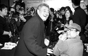 也許是一直沒有在春晚彩排現(xiàn)場出現(xiàn),趙本山吊足了媒體記者的胃口,以至于在昨天的發(fā)布會現(xiàn)場,主創(chuàng)剛一合影結(jié)束,半秒鐘不到就圍上去二三十架機(jī)器,而且每一個麥克風(fēng)都伸到趙本山前面不足5厘米的地方,別說采訪了,連對話都很難進(jìn)行。