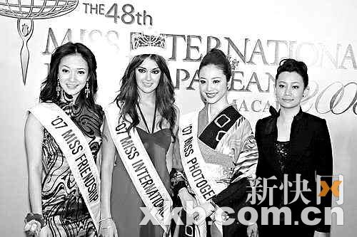 “2008國際小姐和澳門小姐”將于今年下旬舉行,昨日在澳門某酒店舉行記者會(huì),應(yīng)屆國際小姐冠軍Prisila Perales、最上鏡小姐Hisako Shirata(白田久子)和友誼小姐王君馨均有出席。