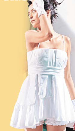 圖文:梁詠琪純白吊帶裙大秀完美長腿