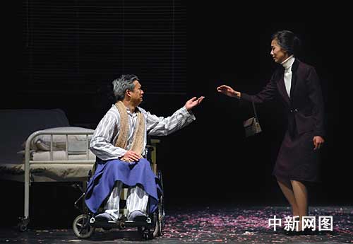 最后一幕的“壓軸場”是分別四十多年的云之凡和江濱柳在病房相見,黃磊和孫莉默契細(xì)膩的表演令全場觀眾為之動容,他們將看似平淡的兩位老年人之間的對話演繹得波瀾起伏,觀眾完全可以感受到云之凡在平靜外表下內(nèi)心的情緒起伏變化以及幾十年來的情感積累和煎熬。當(dāng)孫莉與黃磊在臨別前最后一次握手時,劇場里的啜泣聲幾乎比平時大了一倍多,觀眾真正體會到當(dāng)年《紐約僑報》評價該劇“最后一幕時劇場的墻壁幾乎要溶化掉”的感覺。