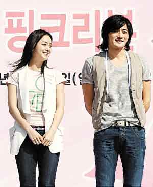 日前被韓國市民選為2008上半年最受歡迎男女藝人的張東健和金泰熙,前日以宣傳大使的身份出席在釜山舉行的“粉紅絲帶愛之馬拉松”活動(dòng),除為參賽者打氣,他倆還自掏腰包捐出善款給預(yù)防乳癌基金。張東健和金泰熙早前因親昵拍攝化妝品廣告而傳出緋聞,前日他倆卻顯得頗為避忌,合照時(shí)更相隔幾尺,莫非金泰熙是怕場內(nèi)大批女選手吃醋?