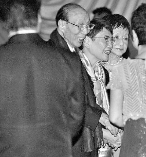 年過百歲的無線行政主席邵逸夫爵士(六叔)和太太方逸華也有到場欣賞港姐決賽,近日無線多次傳出賣盤,所以這次有可能是六叔在易手前最后一次看港姐決賽。