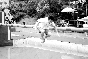 黃健翔在《快樂向前沖》中快樂落水。