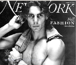 奧運(yùn)會網(wǎng)球男子單打新科冠軍納達(dá)爾成為時尚界的新寵。他赤裸上身大展肌肉,成為即將于本月25日出版的美國時尚雜志《紐約》雜志男女雙刊男子部分的封面人物,與他對應(yīng)的女子部分的封面人物則是前名?死锼沟佟げ剂挚死。