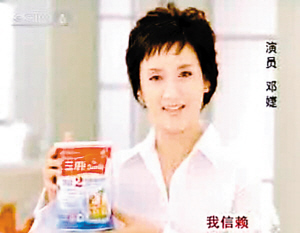 “專業(yè)生產(chǎn),品質(zhì)保證,名牌產(chǎn)品,讓人放心,還實惠,三鹿嬰幼兒奶粉,我信賴!”在網(wǎng)上流傳的三鹿嬰幼兒奶粉廣告視頻中,女明星鄧婕手舉罐裝三鹿嬰幼兒奶粉說著一段廣告詞。
