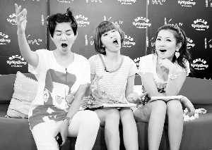 S.H.E和某網(wǎng)站合作的網(wǎng)路電臺將在10月17日播出最后一集,日前三人抽空去進行此集的節(jié)目錄影。Ella綁了個搞笑小辮子;Hebe則一改酷勁,頻在鏡頭前扮丑;Selina就首度放下飄逸長發(fā)耍性感。近來頻頻在節(jié)目中“語不驚人死不休”的S.H.E,在末集都不改“話癆”風格,Ella大爆自己有腸躁癥,出門在外常常是走到哪拉到哪;有潔癖的Hebe正好相反,擔心外面的廁所不干凈,總是憋到回家才“解放”。