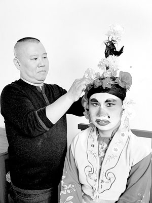 日前,德云社相聲劇《唐伯虎點(diǎn)秋香》在大興的一個(gè)影棚內(nèi)拍完定裝照。幾乎所有演員的化裝都是郭德綱親自上手。
