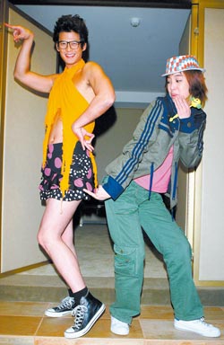 郭品超身高186公分,迷你裙穿在他身上,長度看起來又短一截,為了怕走光,他在迷你裙里套了一件泳褲。但調(diào)皮的他在現(xiàn)場當(dāng)起“暴露狂”,對著大家猛掀裙子,逼得大家一看到他過來就嚇得紛紛逃跑。本來還要他穿高跟鞋,可惜他腳太大,沒有Size。