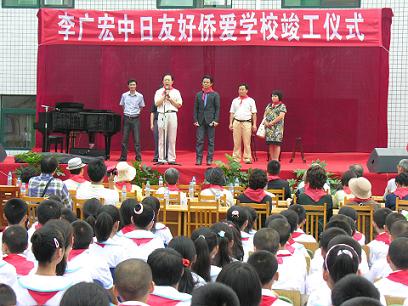 張繼勇在致辭中說,李廣宏先生情系四川、心系災區(qū)。去年“5.12” 汶川特大地震發(fā)生后,李廣宏率日本友人五次來川,多次為災區(qū)學生舉行演唱會,用歌聲撫慰災區(qū)學生受傷的心靈。后又拿出積蓄52.5萬元人民幣,在災區(qū)捐建“李廣宏中日友好僑愛學校綜合樓”。今天,在各方面共同努力下,綜合教學樓終于建成了,我代表省僑辦對此表示熱烈祝賀,對李廣宏先生及日本友人的到來表示熱烈歡迎和衷心感謝。他希望學校師生搞好教學,發(fā)奮勤學,為實現(xiàn)四川省“兩個加快”努力工作,以優(yōu)異成績迎接建國60周年到來。