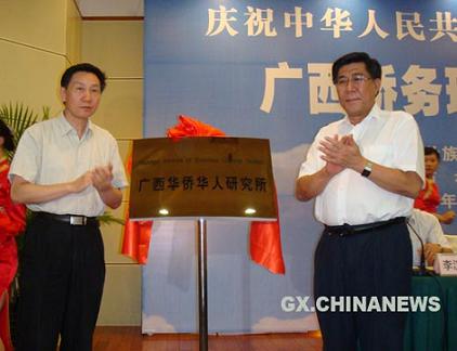 廣西僑務(wù)理論研究的重要基地——廣西華僑華人研究所9月24日在南寧掛牌成立,廣西壯族自治區(qū)政協(xié)副主席梁春祿、國務(wù)院僑辦政策法規(guī)司副司長范如松為研究所揭牌,廣西壯族自治區(qū)僑辦主任李漢金、廣西社會(huì)科學(xué)院院長呂余生等出席活動(dòng)。此為廣西自治區(qū)僑辦充分利用廣西社科院東南亞研究所的資源和力量,發(fā)展廣西的僑務(wù)理論尤其是對(duì)華僑華人研究工作的重要舉措。