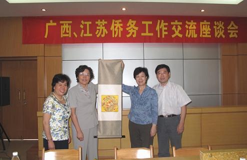 此次江蘇省僑辦紀(jì)檢組長侯永蘭率領(lǐng)的江蘇省僑政工作考察團(tuán)一行16人于10月24日抵達(dá)廣西學(xué)習(xí)考察,廣西區(qū)僑辦熱情接待,并與江蘇省僑政工作考察團(tuán)互相交換紀(jì)念品。
