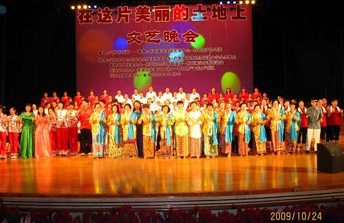 中新網(wǎng)10月29日電 據(jù)汕頭市僑聯(lián)消息,為紀(jì)念廣東省汕頭市解放60周年,10月24日晚,由汕頭市僑聯(lián)主辦,僑聯(lián)南洋文化藝術(shù)中心、僑聲合唱團聯(lián)合承辦的“在這片美麗的土地上”文藝晚會在林百欣會展中心舉行。汕頭市政協(xié)副主席蔡嬋英,汕頭市僑聯(lián)及歸僑僑眷1000多人觀看了演出。
