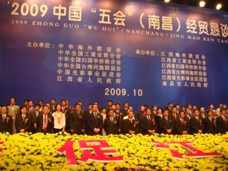 中新網(wǎng)11月4日電 據(jù)中國僑聯(lián)網(wǎng)站消息,10月28日上午,由中華海外聯(lián)誼會(huì)、中華全國工商業(yè)聯(lián)合會(huì)、中華全國歸國華僑聯(lián)合會(huì)、中華全國臺(tái)灣同胞聯(lián)誼會(huì)、中國光彩事業(yè)促進(jìn)會(huì)和江西省人民政府聯(lián)合主辦,以“‘五會(huì)’共架同胞心橋,八方同促江西崛起”為主題的2009中國“五會(huì)”(南昌)經(jīng)貿(mào)懇談會(huì)在南昌市紅谷灘會(huì)議中心開幕。中央統(tǒng)戰(zhàn)部副部長、全國工商聯(lián)黨組書記全哲洙,全國臺(tái)聯(lián)會(huì)長梁國揚(yáng),中國僑聯(lián)副主席王永樂以及江西省有關(guān)領(lǐng)導(dǎo)出席開幕式。