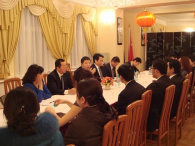 當(dāng)晚,中國(guó)駐圣彼得堡總領(lǐng)事田二龍會(huì)見(jiàn)并宴請(qǐng)國(guó)僑辦代表團(tuán)一行。
