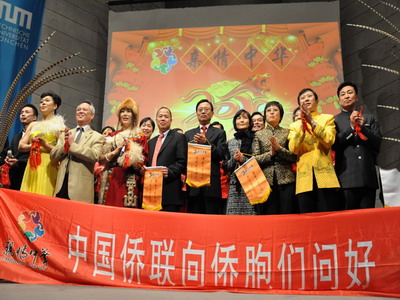 中新網(wǎng)1月6日電 據(jù)中國外交部網(wǎng)站消息,2010年1月3日晚,中國僑聯(lián)組織的“親情中華”藝術(shù)團歐洲之行首場演出在德國慕尼黑舉行。慕尼黑總領(lǐng)事馬晉生和夫人劉霞、領(lǐng)館館員及慕尼黑工業(yè)大學副校長孟麗秋、巴州華商會、僑學界、中資機構(gòu)和一些德國友人約800人觀看演出。
