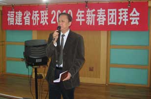 團拜會上,福建省僑聯(lián)主席李欲晞發(fā)表了熱情洋溢的講話。他代表福建省僑聯(lián)黨組向大家致以節(jié)日的問候,衷心感謝各位老前輩、顧問、老同志對省僑聯(lián)工作的一貫關心和支持。值此辭舊迎新之際,盤點2009,福建省僑聯(lián)的工作可以用“理論引領‘三主題’、服務大局促‘三!、推動和諧迎‘三慶’、凝心聚力交‘三友’、自身建設重‘三基’”五句話來總結概括;展望2010,根據中國僑聯(lián)部署和海西建設要求,福建省僑聯(lián)將繼續(xù)發(fā)揮優(yōu)勢,干好十二件事。“2010”是一個吉祥的數(shù)字,寓意著好事成雙,李欲借這個好數(shù)字祝福大家虎年事業(yè)發(fā)展、家庭幸福、十全十美!