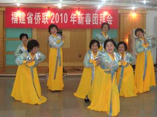 團拜會由福建省僑聯(lián)副主席謝小建主持,黨組成員翁祖根出席。會上,來自福建省僑聯(lián)藝術團和福州市離退休歸僑聯(lián)誼會的藝術家們還帶來了精彩的文藝節(jié)目。輕松歡快的女生小組唱、獨具異域風情的印尼舞蹈、剛柔并濟的梅花拳、健康時尚的太極柔力球表演、清新悠揚的女聲獨唱、優(yōu)美動人的朝鮮舞蹈,藝術家們的表演博得了陣陣掌聲。