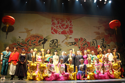 熱烈喜慶的《新春花鼓》拉開(kāi)了 “文化中國(guó)·四海同春”歐洲巡演的序幕。美麗婀娜的維族舞蹈《頂碗舞》、熱情奔放的藏族舞蹈《快樂(lè)藏人》、氣勢(shì)雄渾的馬頭琴獨(dú)奏《萬(wàn)馬奔騰》贏得陣陣掌聲;歌唱家呂薇的一曲充滿鄉(xiāng)音的《采茶舞曲》,讓浙江籍僑胞倍感親切;著名男高音歌唱家劉斌鏗鏘有力的《咱當(dāng)兵的人》,將整臺(tái)演出推向高潮;美輪美奐的舞蹈《千手觀音》落下了藝術(shù)團(tuán)在法演出的帷幕。持續(xù)近三個(gè)小時(shí)精彩絕倫的演出不時(shí)地博得了觀眾雷鳴般的掌聲。僑胞們?cè)凇峨y忘今宵》的音樂(lè)聲中久久佇立,不愿離去,贊嘆“這是一場(chǎng)內(nèi)容豐富、充滿激情、民族特色濃郁、藝術(shù)水準(zhǔn)高超的演出,令人難忘”。他們由衷地感謝國(guó)務(wù)院僑辦在新春之際為旅法僑胞帶來(lái)的文化盛宴。