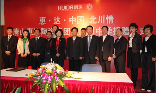 王永樂(lè)代表中國(guó)僑聯(lián)對(duì)惠達(dá)陶瓷(集團(tuán))股份有限公司支持援建北川中學(xué)的義舉表示感謝。他說(shuō),惠達(dá)集團(tuán)是在地震廢墟上開始創(chuàng)業(yè)發(fā)展起來(lái)的,經(jīng)歷過(guò)唐山地震的惠達(dá)集團(tuán)對(duì)汶川地震有更為深切的體會(huì);葸_(dá)集團(tuán)在得知中國(guó)僑聯(lián)援建北川中學(xué)的消息后,迅即與中國(guó)僑聯(lián)取得聯(lián)系,向北川中學(xué)捐贈(zèng)所有的潔具產(chǎn)品,并以企業(yè)的成本價(jià)向?qū)W校提供裝修所用的優(yōu)質(zhì)瓷磚,正是有了像惠達(dá)集團(tuán)這樣有社會(huì)責(zé)任感的企業(yè)的大力支持,中國(guó)僑聯(lián)援建北川中學(xué)的項(xiàng)目才能取得今天的成績(jī)。