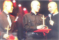 1999年度中國電影華表獎得主:主演《橫空出世》的李雪健(左一)、主演《我的一九一九》的陳道明(中)獲得優(yōu)秀男演員獎。滿會喬