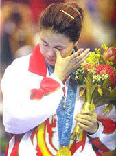中國乒乓球名將王楠苦戰(zhàn)五局奪得奧運會女單金牌后,不停拭去冠軍淚。