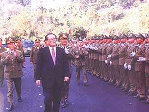 賀賢書陪同江澤民主席檢閱進駐澳門的部隊