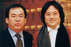 錢程(左)和國際著名指揮家湯沐海(右)在一起。 |