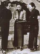 中華民族的浴血抗戰(zhàn)不僅導(dǎo)致國(guó)共第二次合作,亦促成宋家姐妹暫拋開(kāi)私怨與公仇,攜手抗日。宋美齡在重慶郊外向大姐、二姐說(shuō)明防空洞設(shè)施。 |