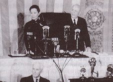 1943年2月18日,蔣夫人向美國(guó)眾議院發(fā)表演說(shuō),圖為眾院議長(zhǎng)山姆·雷朋向眾議員介紹蔣夫人。 |