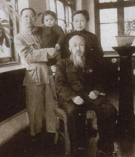 1948年于香港,沈叔羊與妻子、女兒同老父沈均儒合影. |