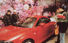 可滿大街都是富康出租車,趙懷玉想,要是能有一輛與眾不同的就好了。直到前兩年在一次東南亞的車展上,她終于發(fā)現(xiàn)了一輛紅色富康!改阒啦恢馈簩汃R』的紅色──『寶馬』對紅色是最有講究的。我當(dāng)時(shí)看中了這輛富康,就因?yàn)樗褪菍汃R的那種紅,只有它才配得上我的衣服──因?yàn)槲业囊路䦷缀跞呛谏摹!?/p>